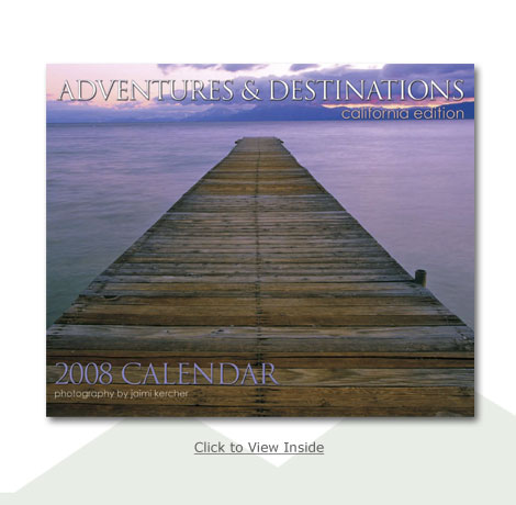 Our 6th annual calendar includes 24 full color images from some of California's most beautiful destinations and adventure locations. Each month features a unique California destination, with two full-color images and a brief description of the area. Click here for more details. Only a limited quantity is available, so now $14.95 Click here to download order form